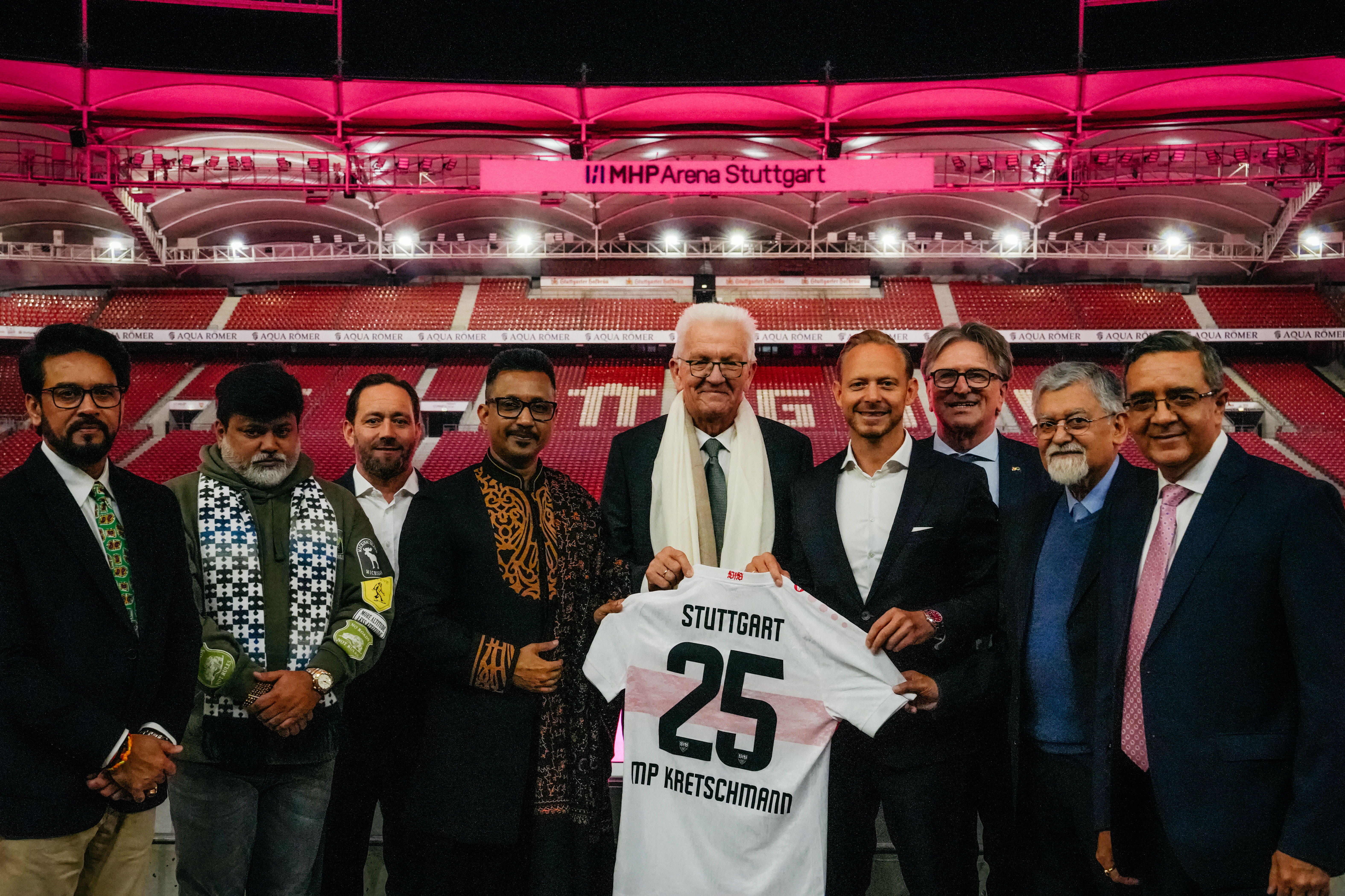 A pre-opening dinner was held on the night before the summit at the Porsche Tunnel Club in the MHP Arena, with Baden-Württemberg’s Minister President Winfried Kretschmann underlining the significance of dialogue between Germany and India. This was followed by a gala evening in Stuttgart’s New Palace, where VfB President Dietmar Allgaier spoke of the successful cooperation between the two nations and of VfB Stuttgart’s role building bridges between the countries and their respective cultures.