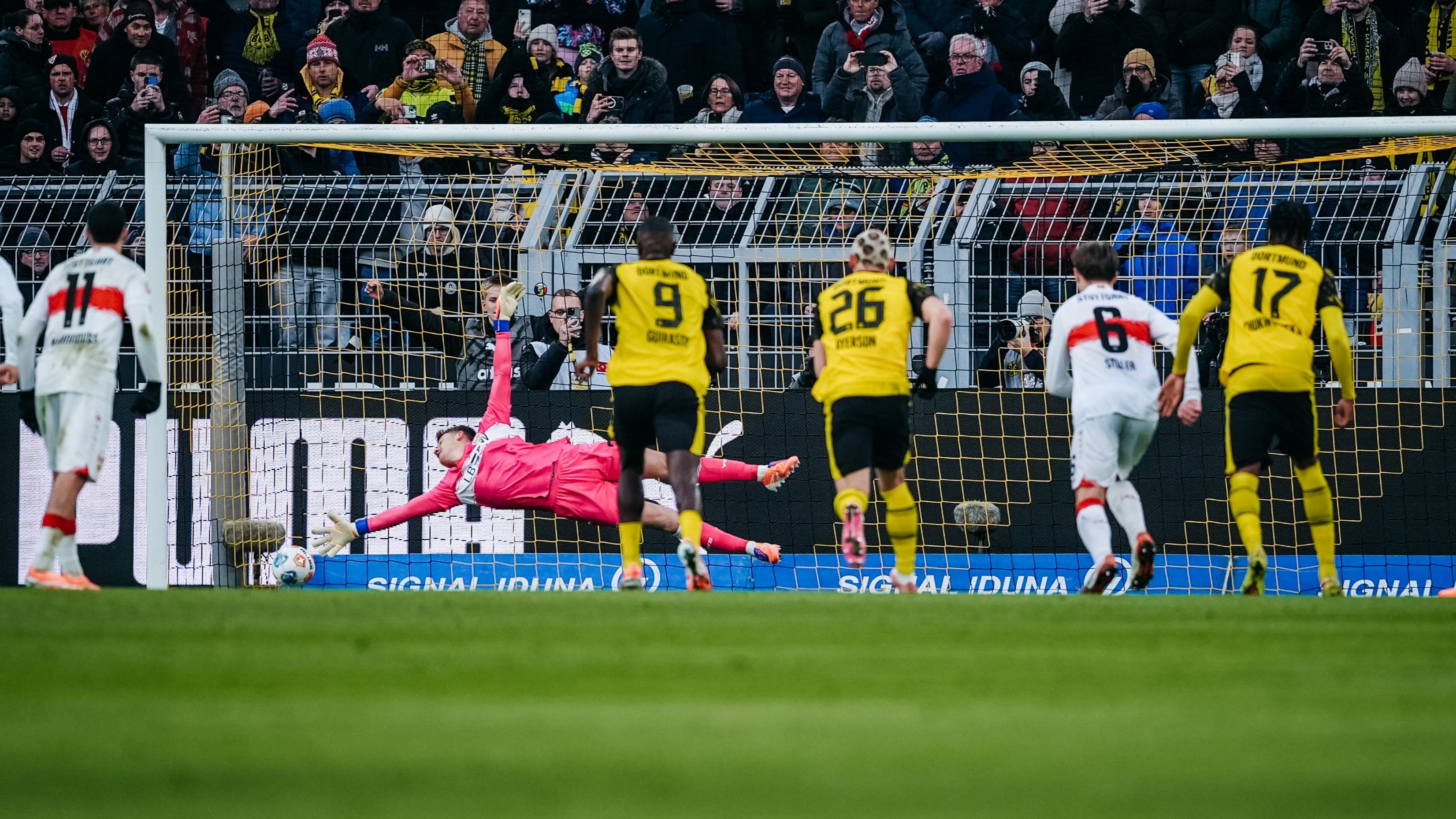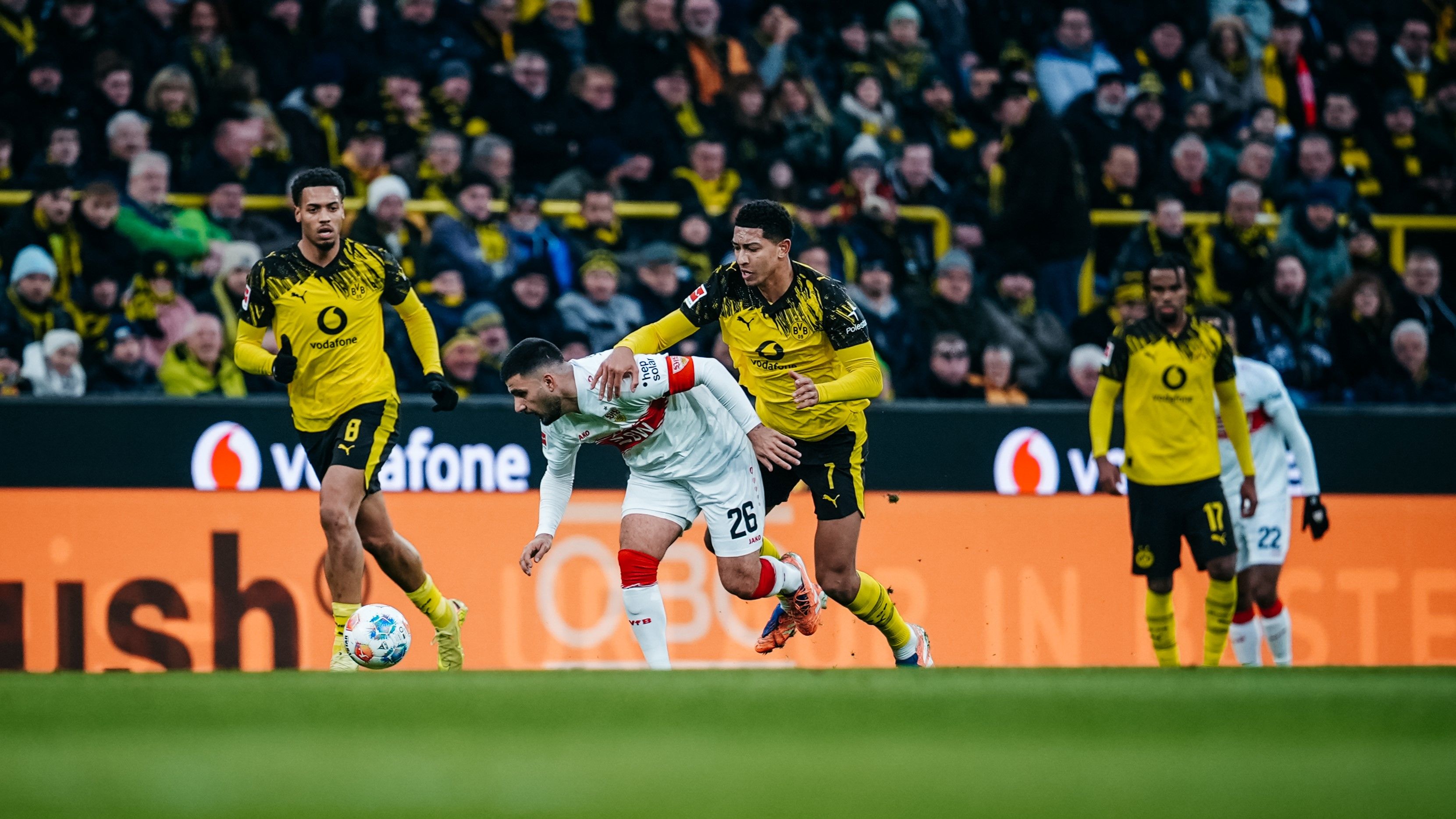 It was, however, the home side that took the lead when Deniz Undav fouled Nico Schlotterbeck inside the box. Emre Can confidently converted the ensuing penalty to put Dortmund in front (34’), changing the flow of the game.