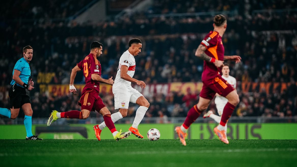 VfB continued to push for an equaliser against a well-organised Roma defence, and once again Svilar was called on to make a fine save from Lorenz Assignon (67’). The home ’keeper also beat out a close-range shot from substitute Ermedin Demirovic in the 79th minute, before Pisilli showed VfB how to do it, doubling his own and his team’s tally in time added on (90’+3) and sending the Roma fans home happy.